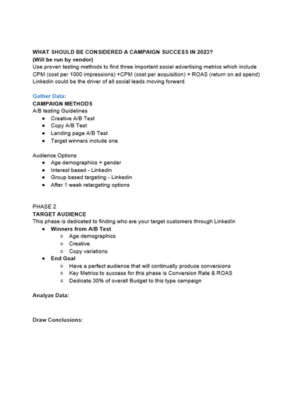 Describes process for testing a digital channel. This was used for a new Linked In campaign.